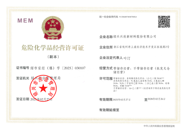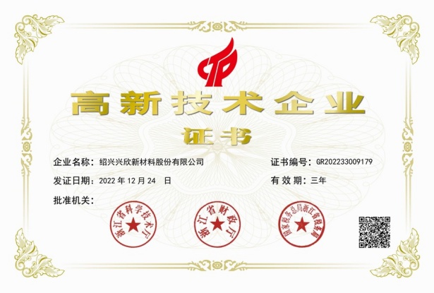 紹興興欣新材料股份有限公司成立于2002年06月27日,占地面積122畝,位于杭州灣上虞經(jīng)濟(jì)技術(shù)開(kāi)發(fā)區(qū)拓展路2號(hào),現(xiàn)有職工200余人,專(zhuān)業(yè)技術(shù)人員50余人;博士、碩士研究生30余人組成的一支知識(shí)型、專(zhuān)業(yè)化的技術(shù)科研團(tuán)隊(duì)。公司面向全球市場(chǎng),專(zhuān)業(yè)開(kāi)發(fā)電子化學(xué)品、環(huán)保化學(xué)品、醫(yī)藥中間體、高分子材料等先進(jìn)新材料重點(diǎn)領(lǐng)域的省級(jí)科技型企業(yè);建有浙江上虞、安徽東至兩個(gè)生產(chǎn)基地。目前為“國(guó)家高新技術(shù)企業(yè)”、浙江省“隱形冠軍”企業(yè)、浙江省專(zhuān)精特新中小企業(yè);建有“省級(jí)”研究開(kāi)發(fā)中心,共建天津大學(xué)浙江紹興研究院電子化學(xué)品研發(fā)中心。